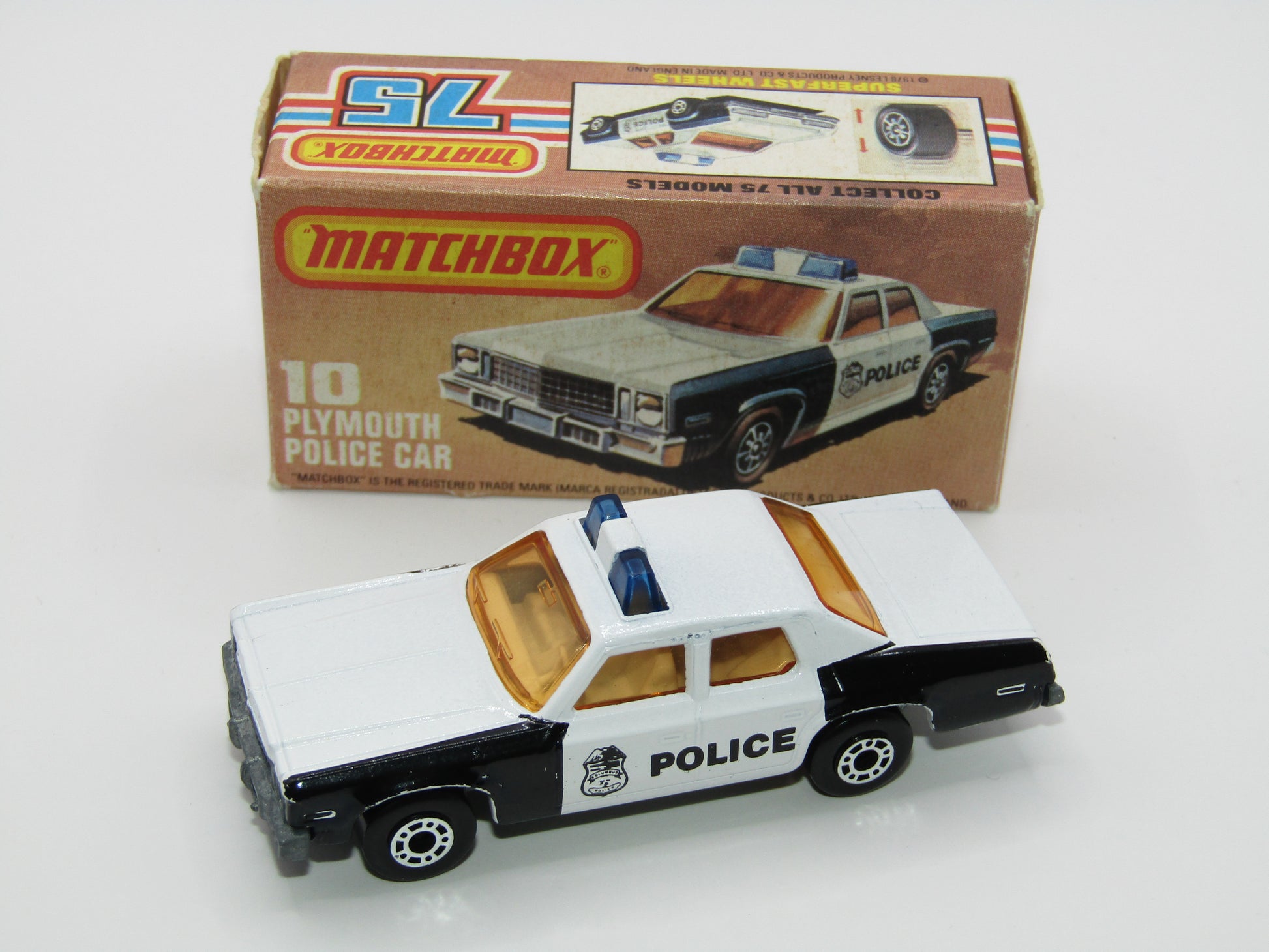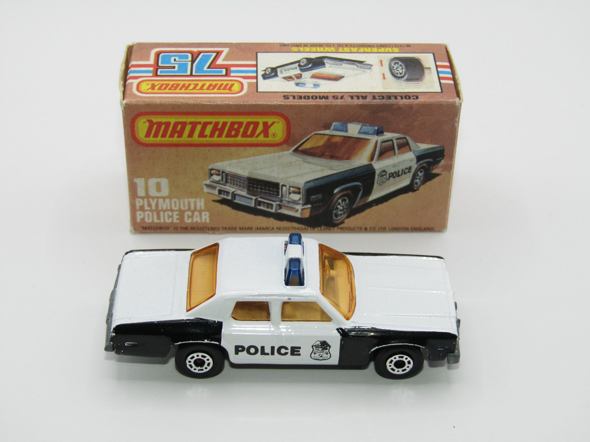 Matchbox Superfast 10C Plymouth Gran Fury Police & Shield Tampo Light Amber Windows
