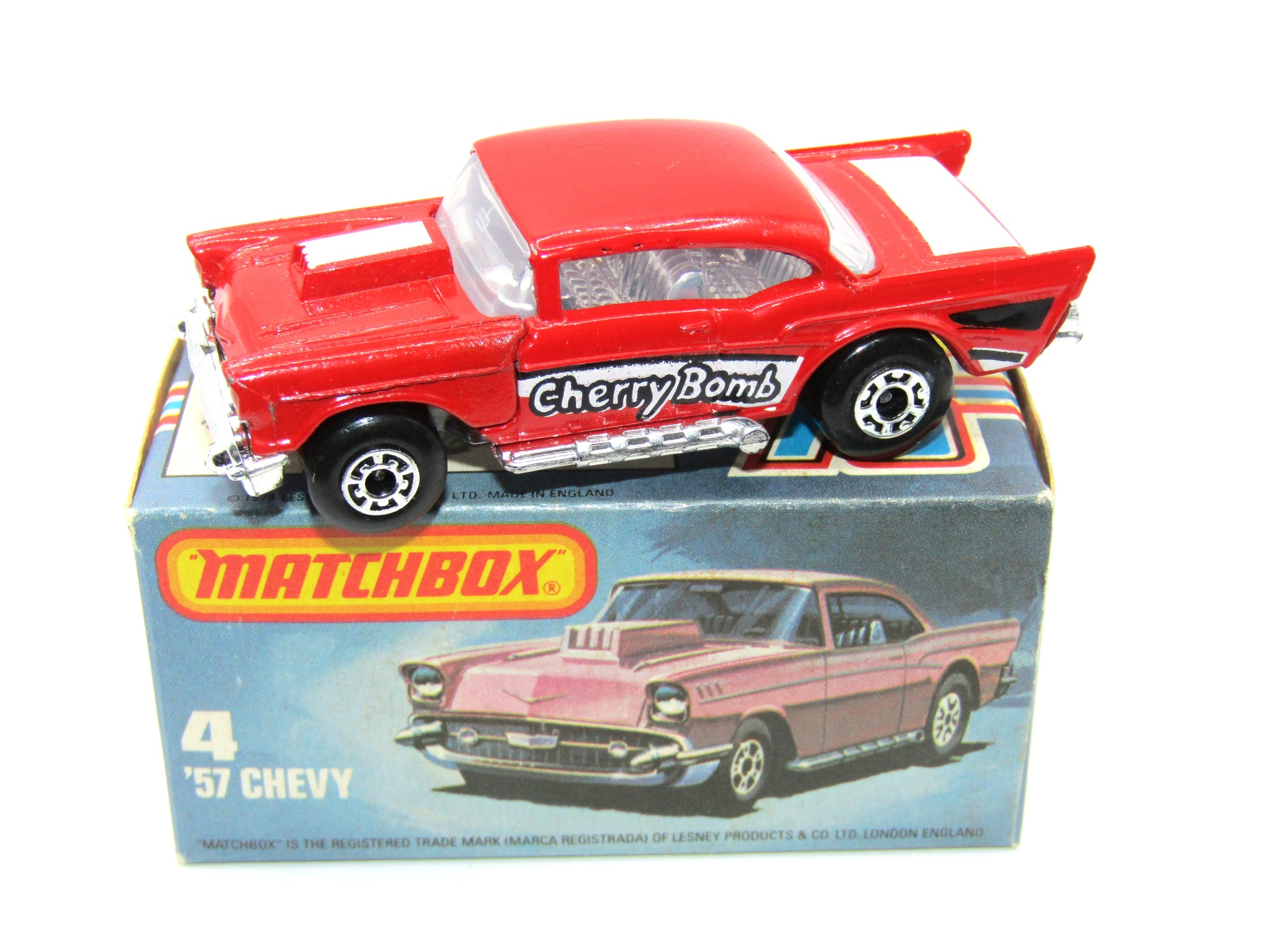 Matchbox Superfast 4D '57 Red Silver Base Cherry Bomb Tampo