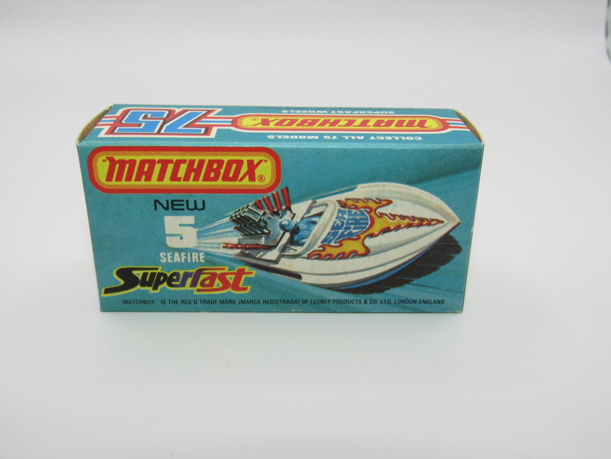 Matchbox Superfast 5B Seafire Boat, White, Blue Driver, TURQUOISE Base
