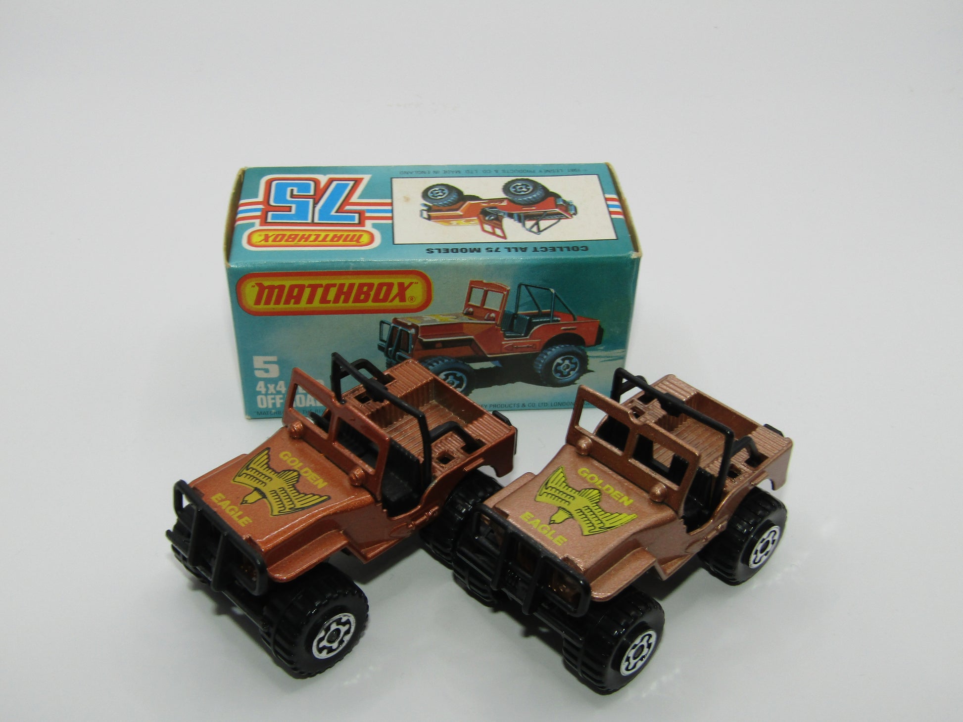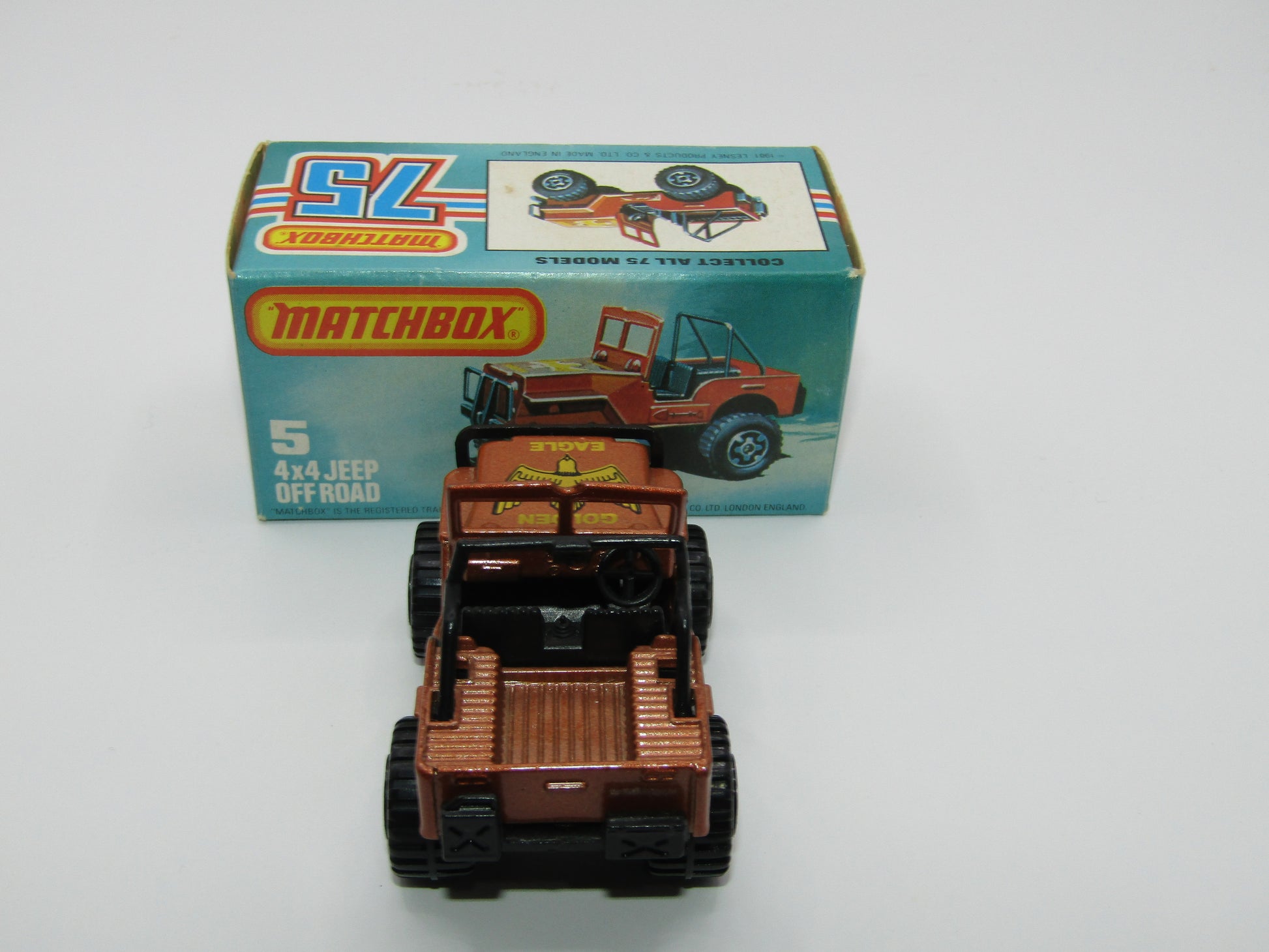 Matchbox Superfast 5D 4X4 Jeep DARK BRONZE, Roll Bar, Wide Maltese Cross Wheels