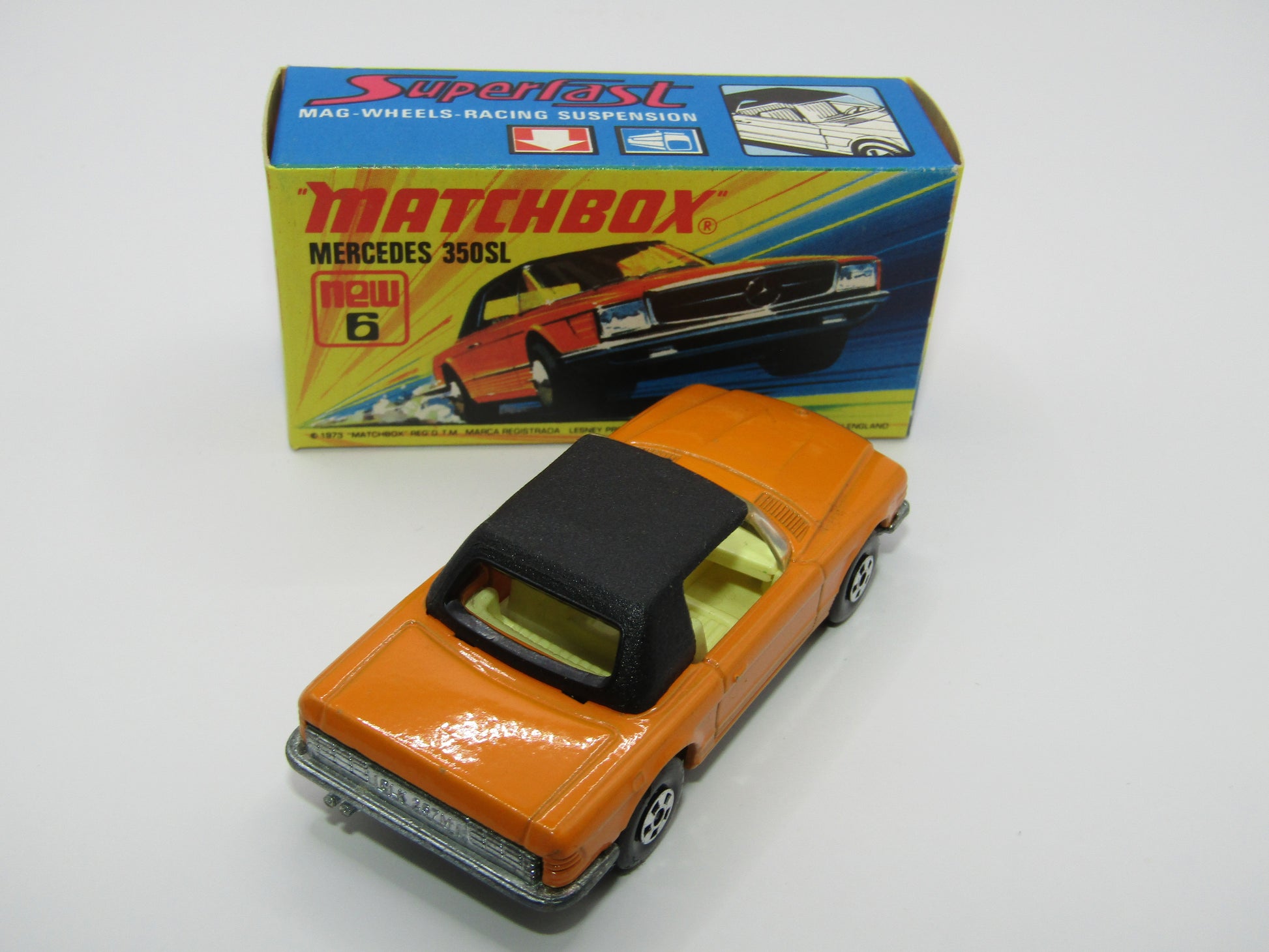 Matchbox Superfast 6B Mercedes 350SL Orange CLEAR Windows 5 Spoke Small Slot Wheels