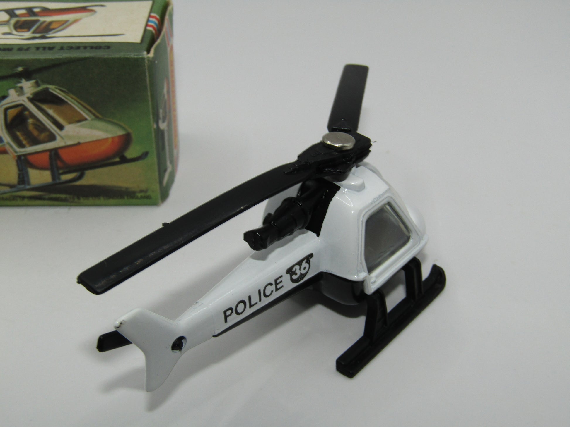 Matchbox Superfast 75D Helicopter "36 Police Tampo" Clear Windows, Black Legs