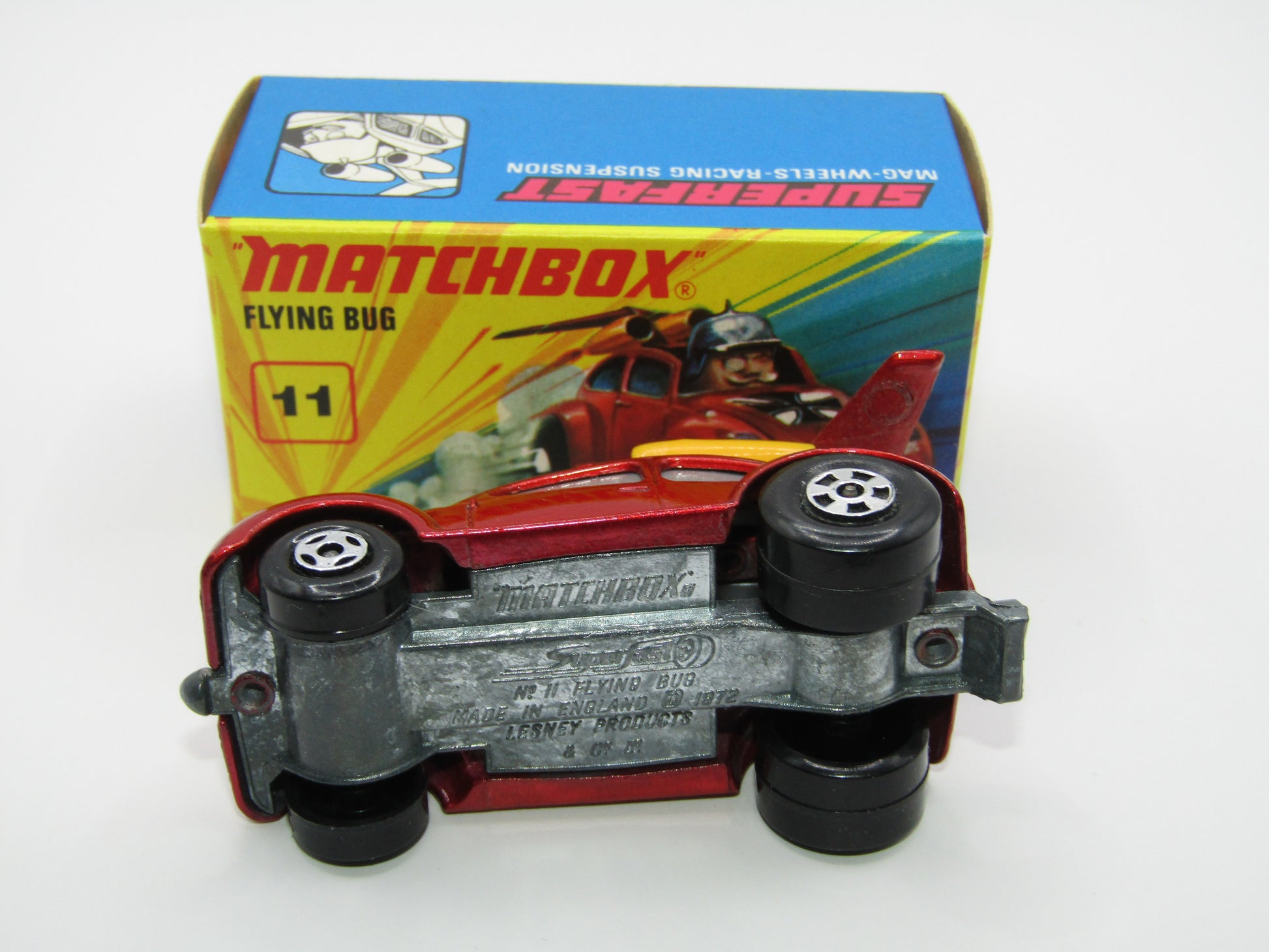 Matchbox Superfast No 11 Flying Bug 4 SPOKE Wheels Unpainted Base
