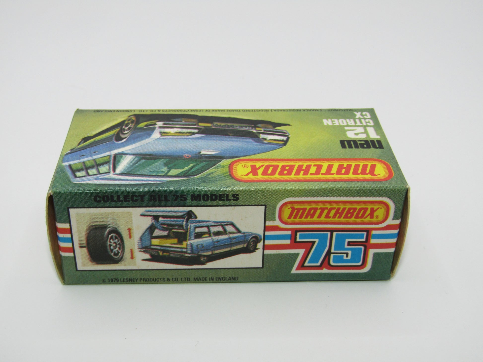 Matchbox Superfast No 12D Citroen CX Medium Metallic Blue, BLUE WINDOWS, Light Yellow Interior, Silver Base