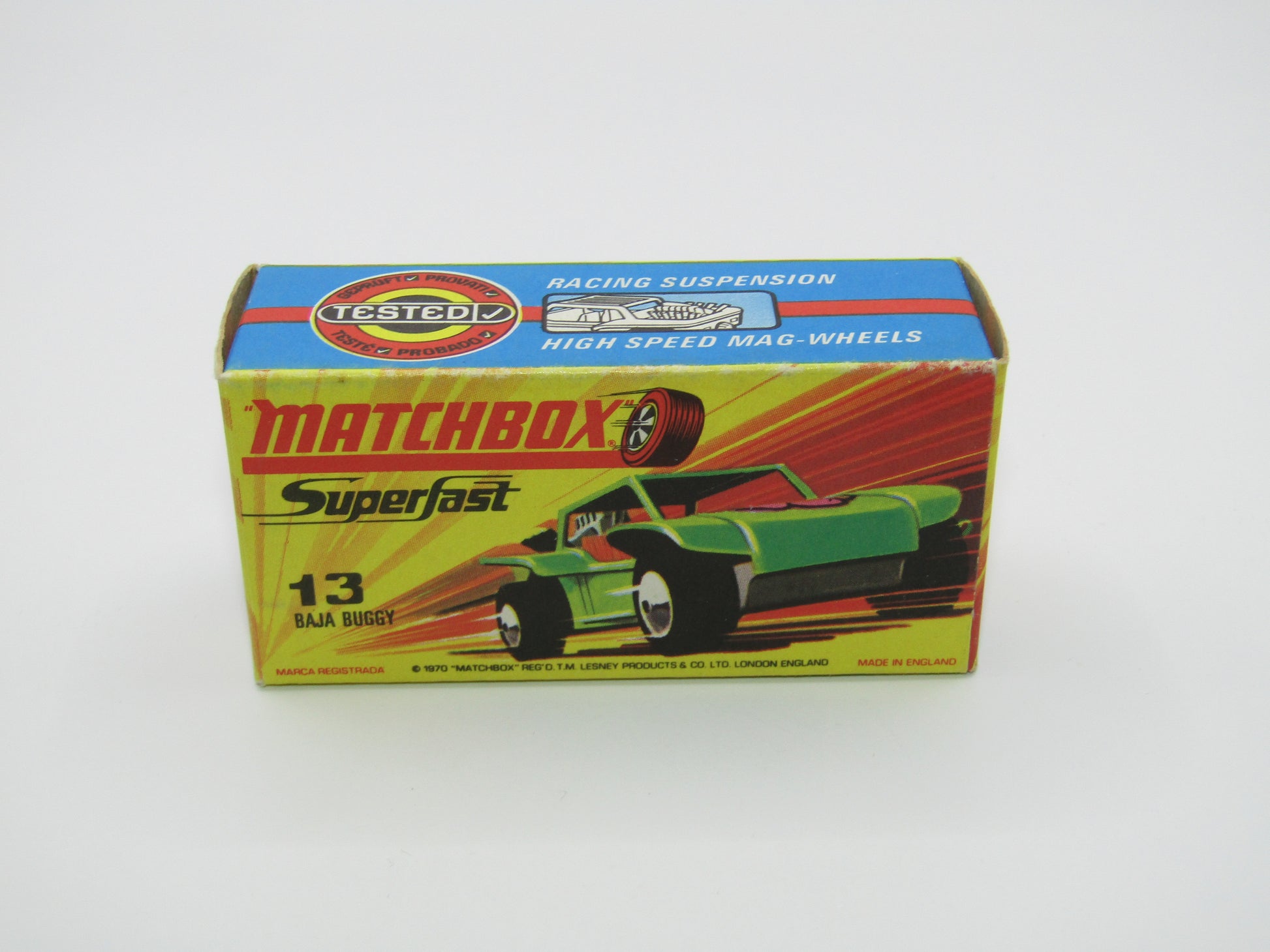 Matchbox Superfast No 13B Baja Buggy Light Metallic Green, Orange Interior, Black Engine Pipes