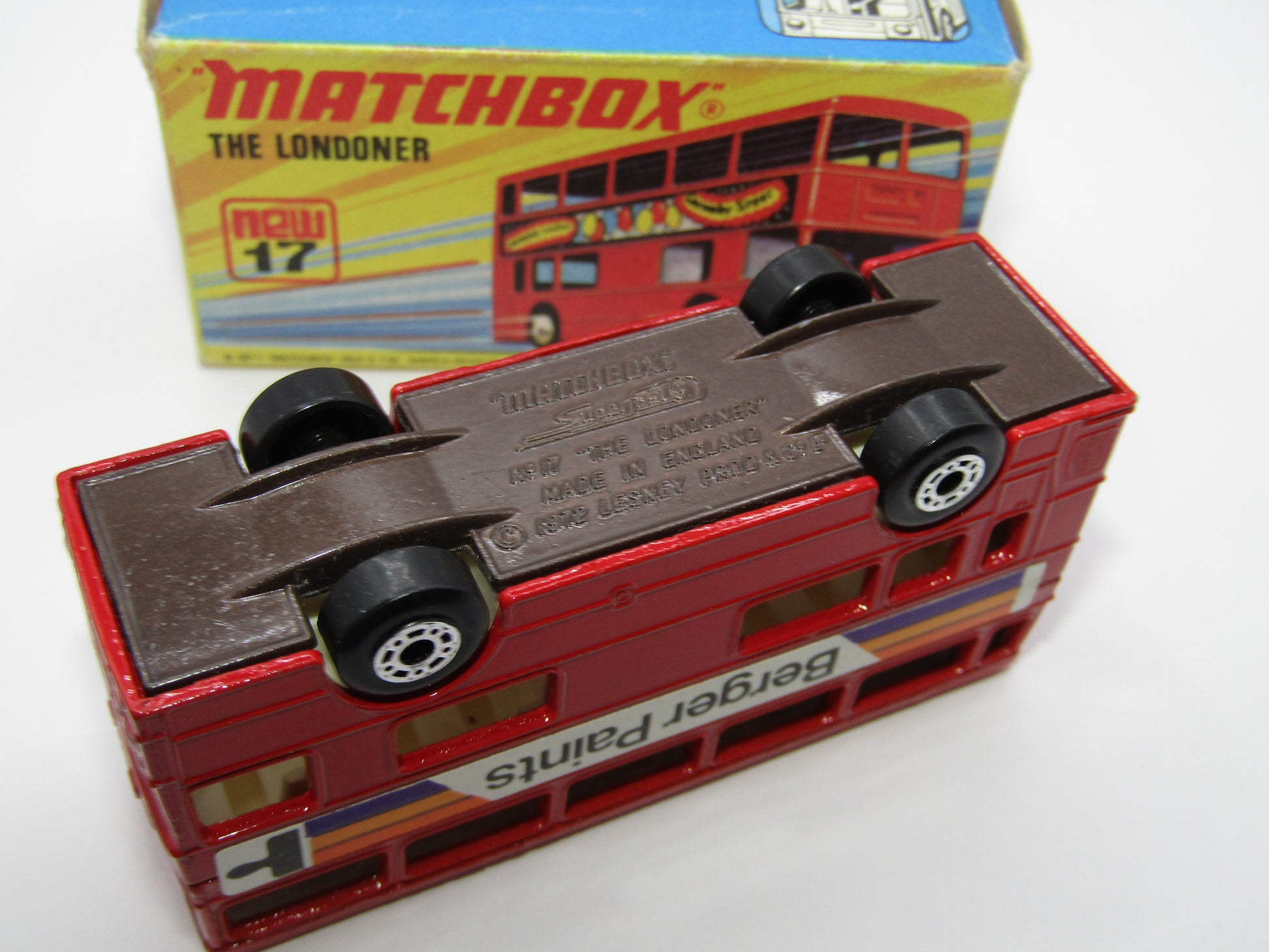 Matchbox Superfast No 17B The Londoner, Berger Paints, Dot Dash Wheels, METALLIC BROWN Base