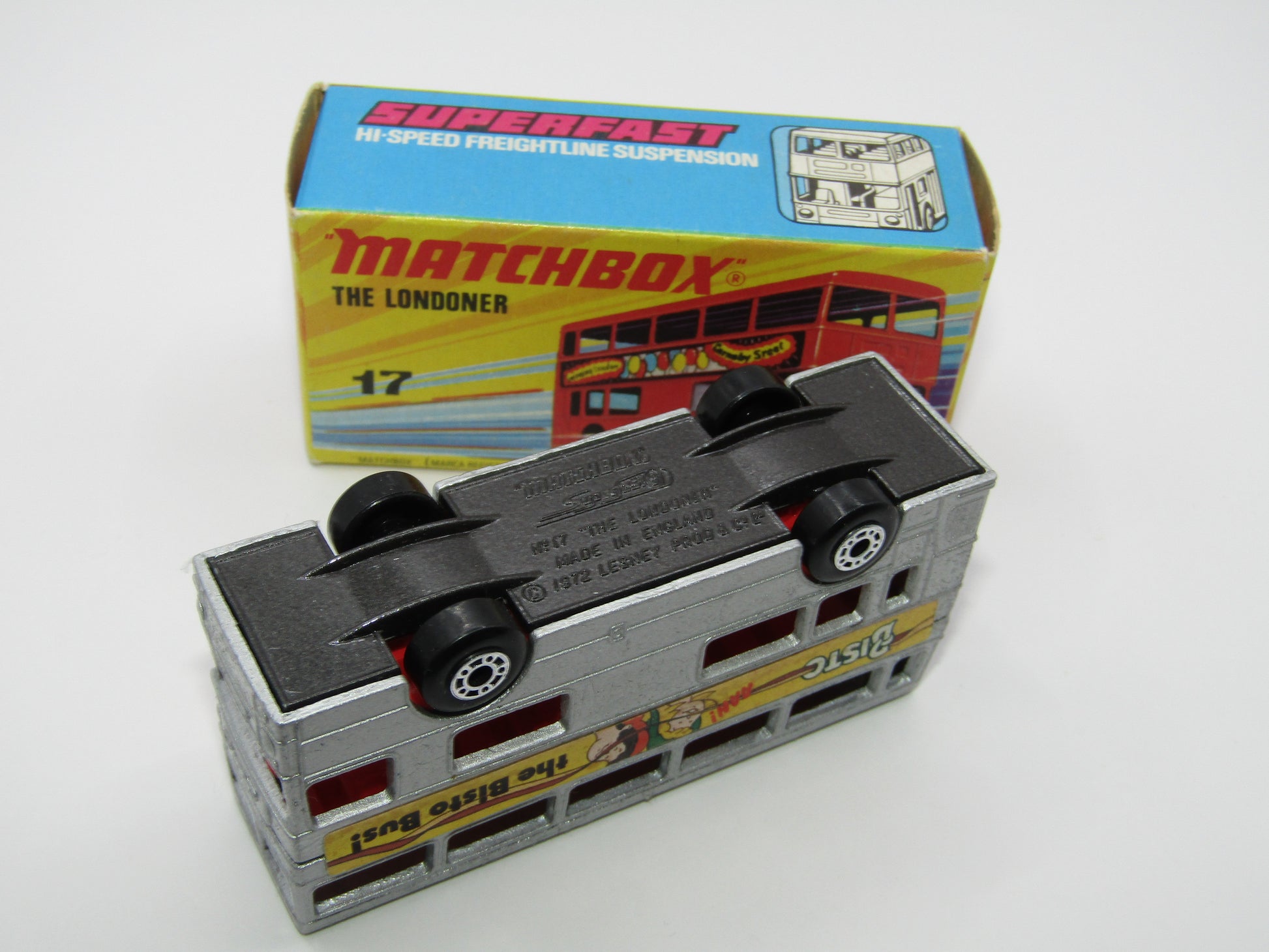 Matchbox Superfast No 17B The Londoner BISTO SILVER, Dot Dash Wheels, Metallic Charcoal Grey Base