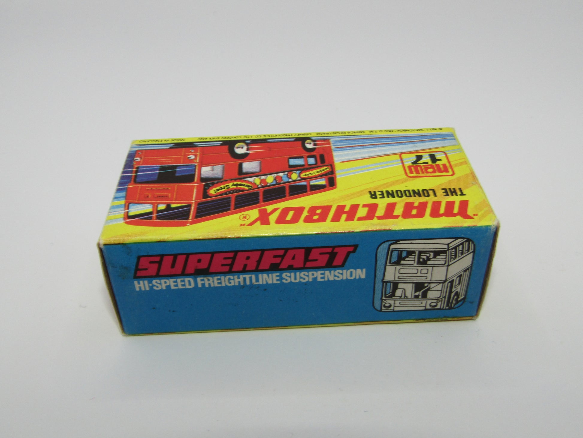 Matchbox Superfast No 17B The Londoner, EDUSCHO KAFFEE, 5 Spoke Wheels, Gloss Black Base