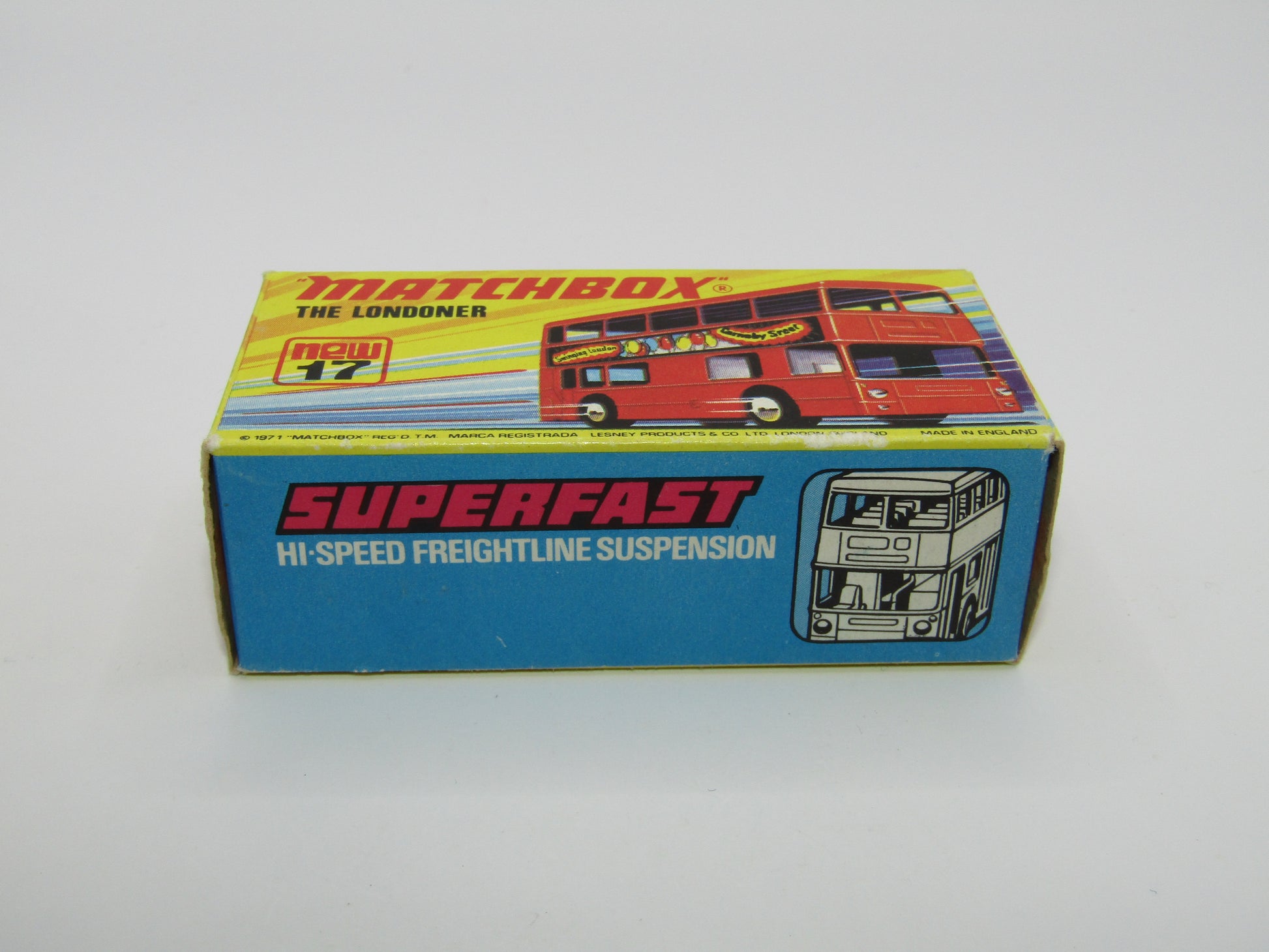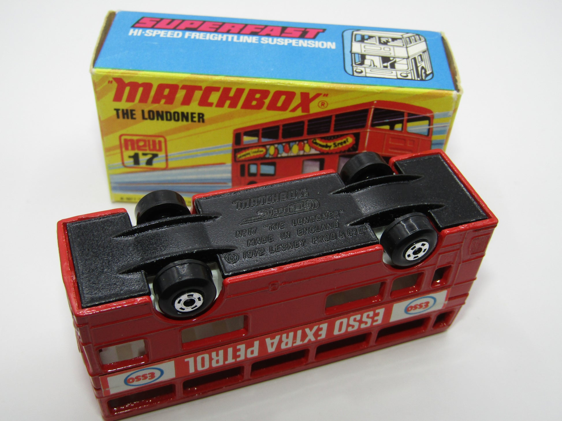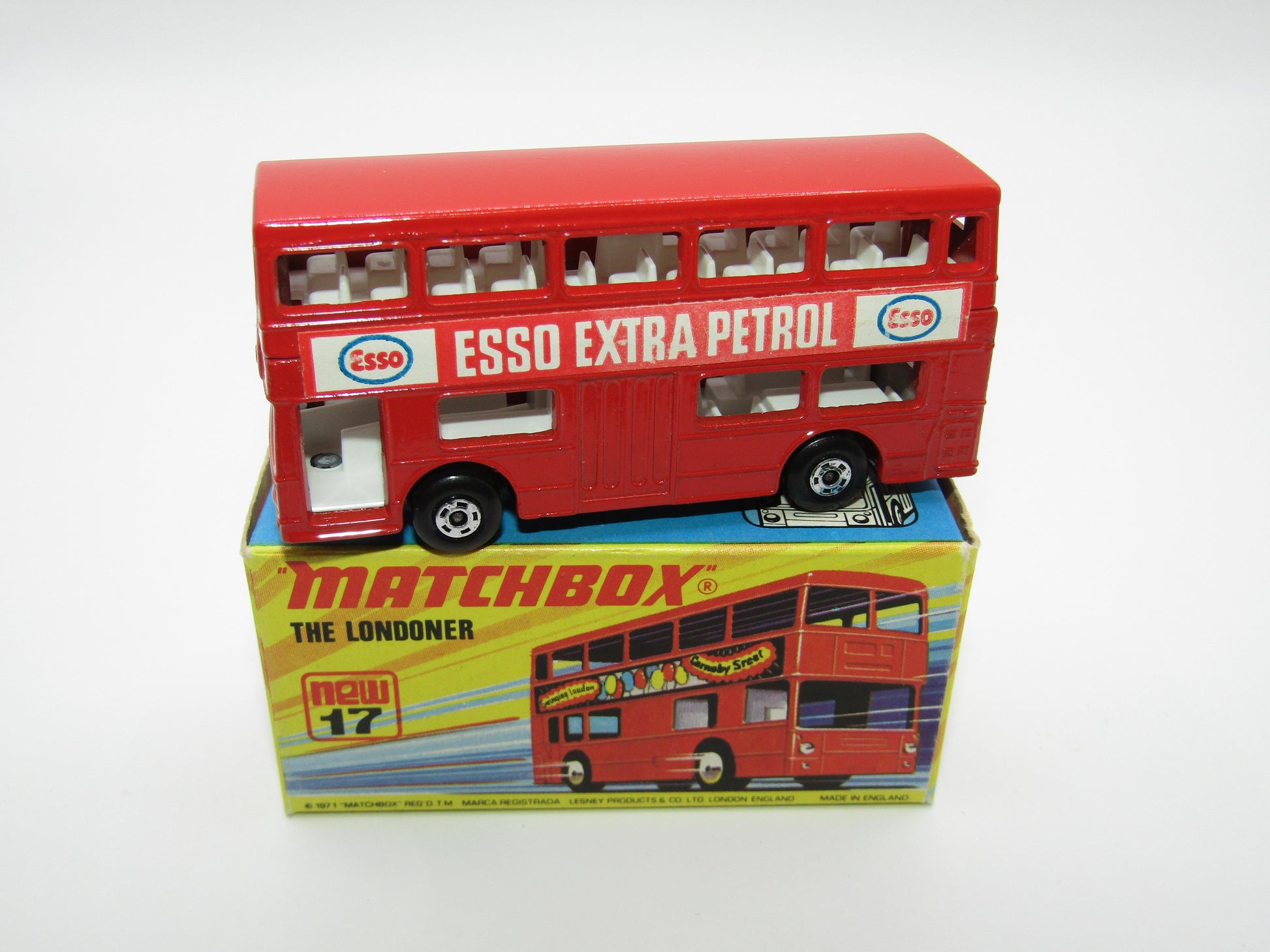 Matchbox Superfast No 17B The Londoner, ESSO EXTRA PETROL, 5 Spoke Wheels, Gloss Black Base