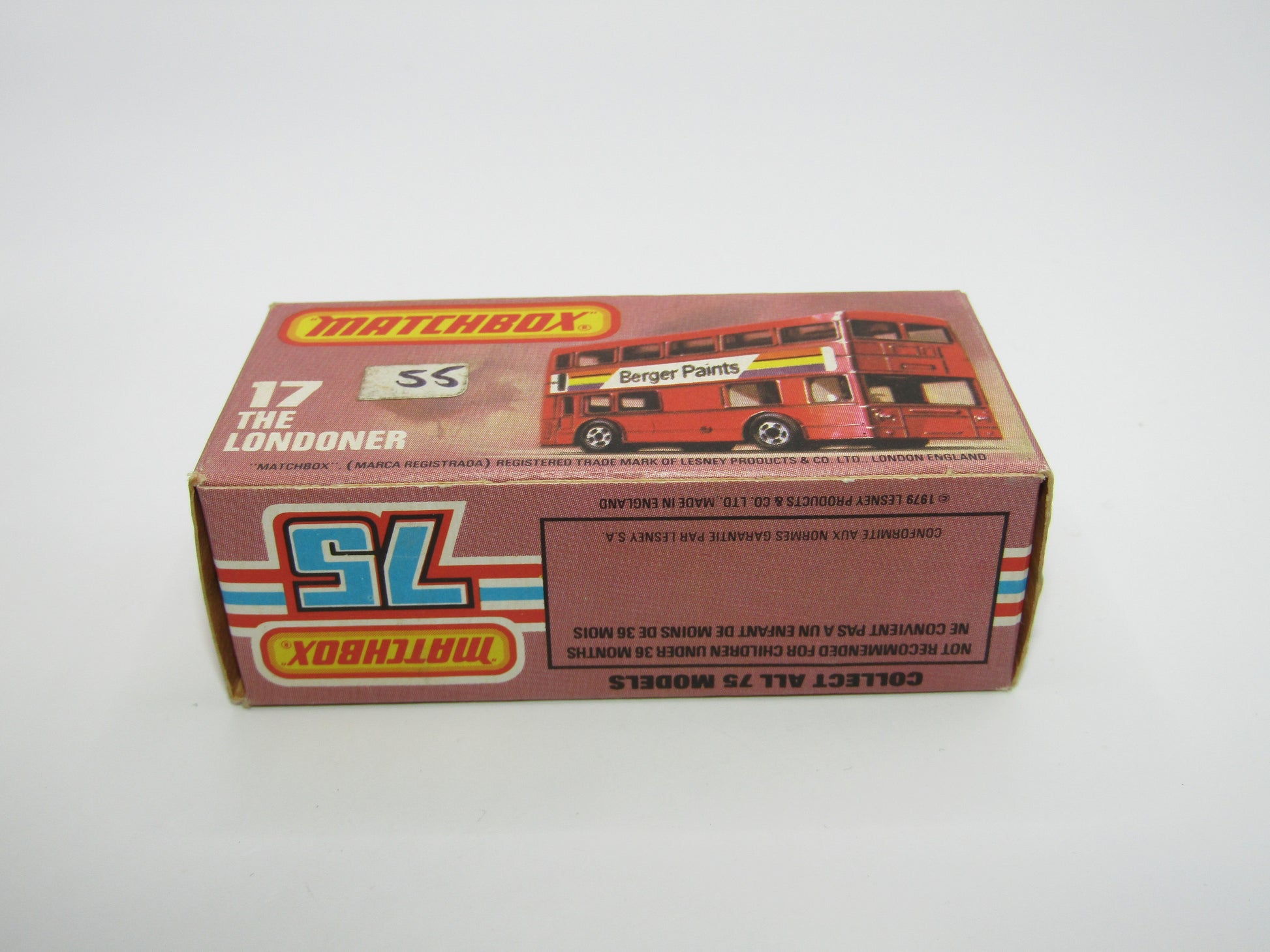 Matchbox Superfast No 17B The Londoner, EDUSCHO KAFFEE, 5 Spoke Wheels, Gloss Black Base