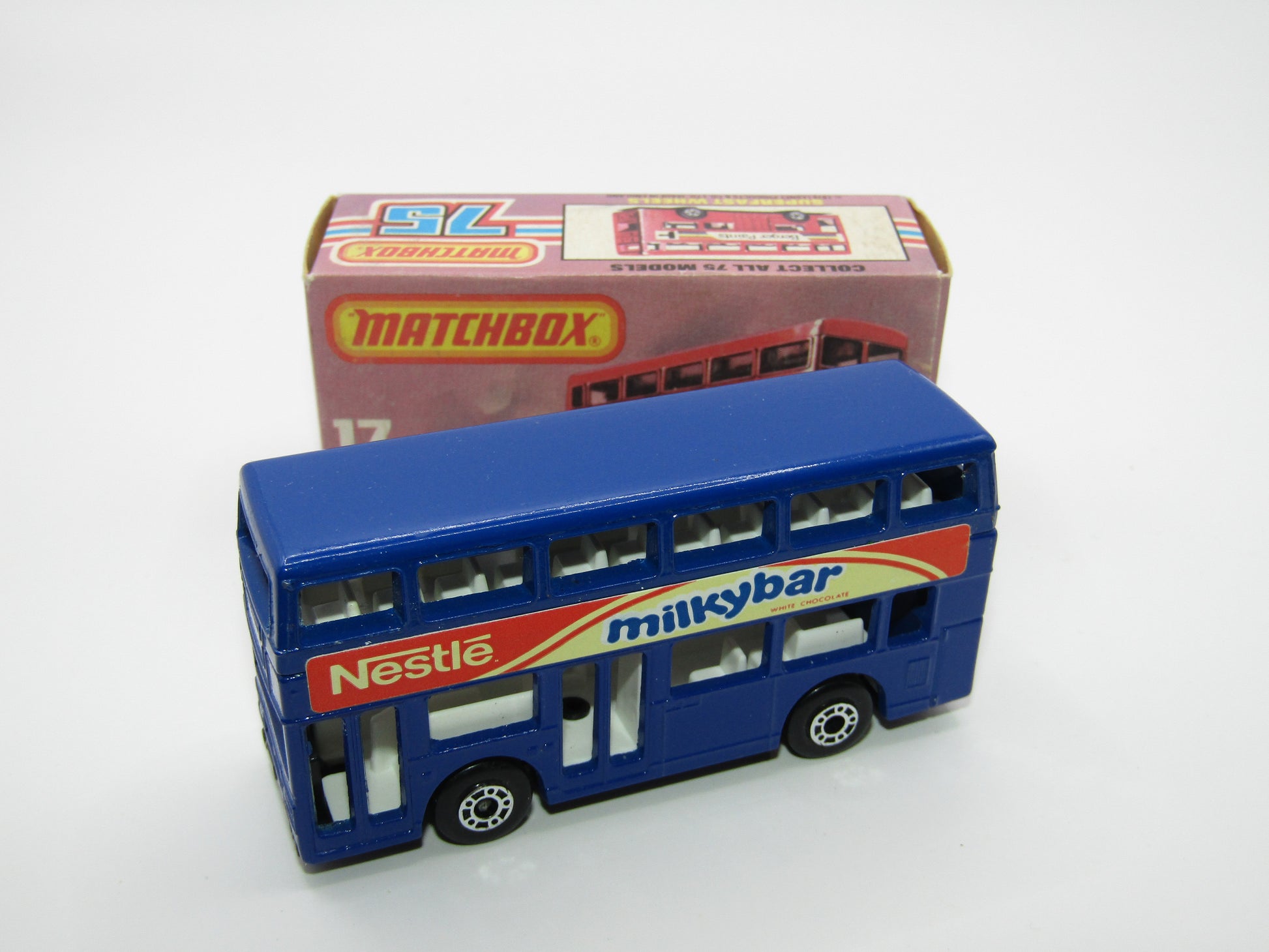 Matchbox Superfast No 17C London Bus, Blue, Nestle Milky Bar, Lesney England Base