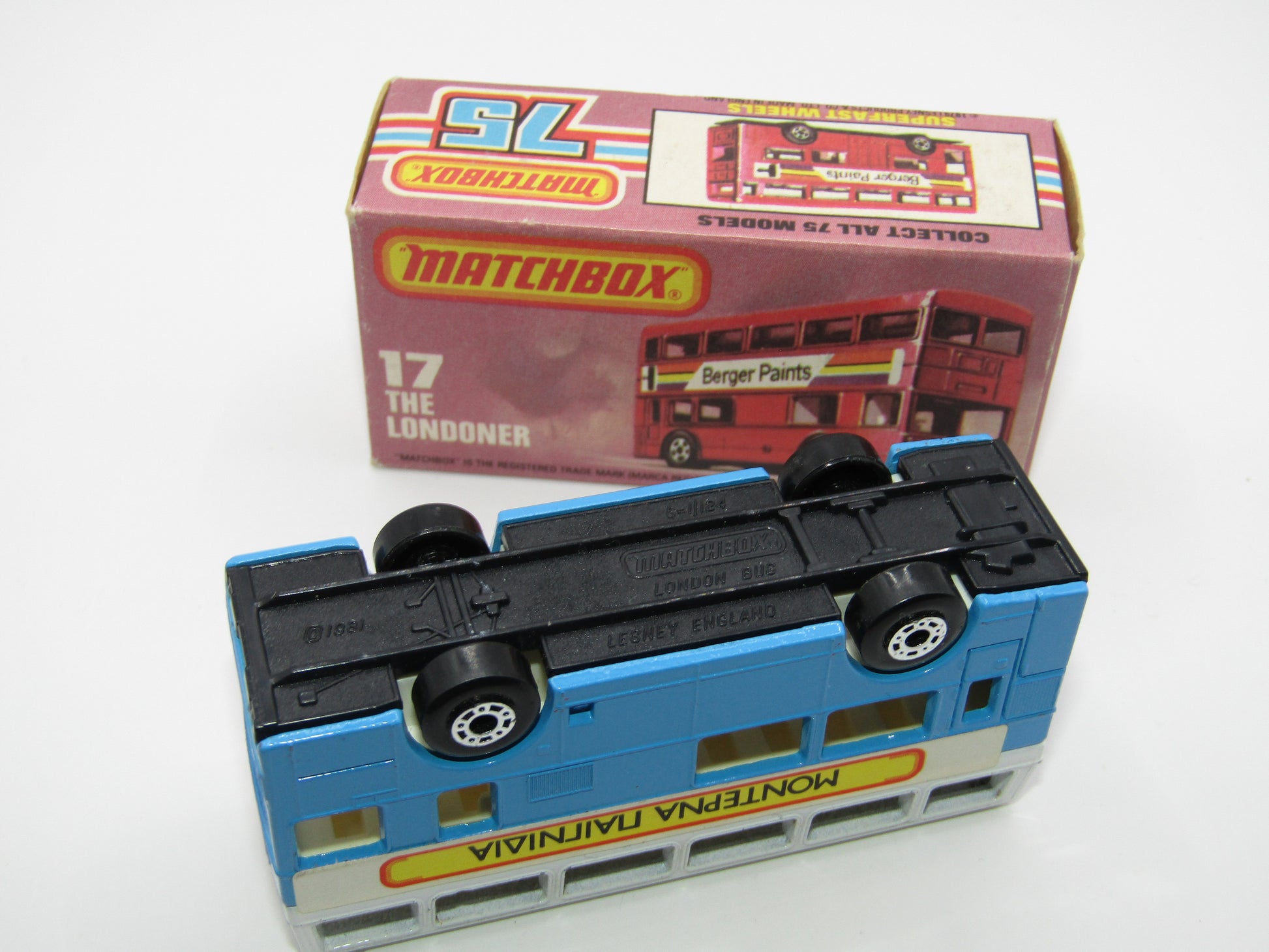 Matchbox Superfast No 17C London Bus, Blue & White. Matchbox No 1, Greek Bus