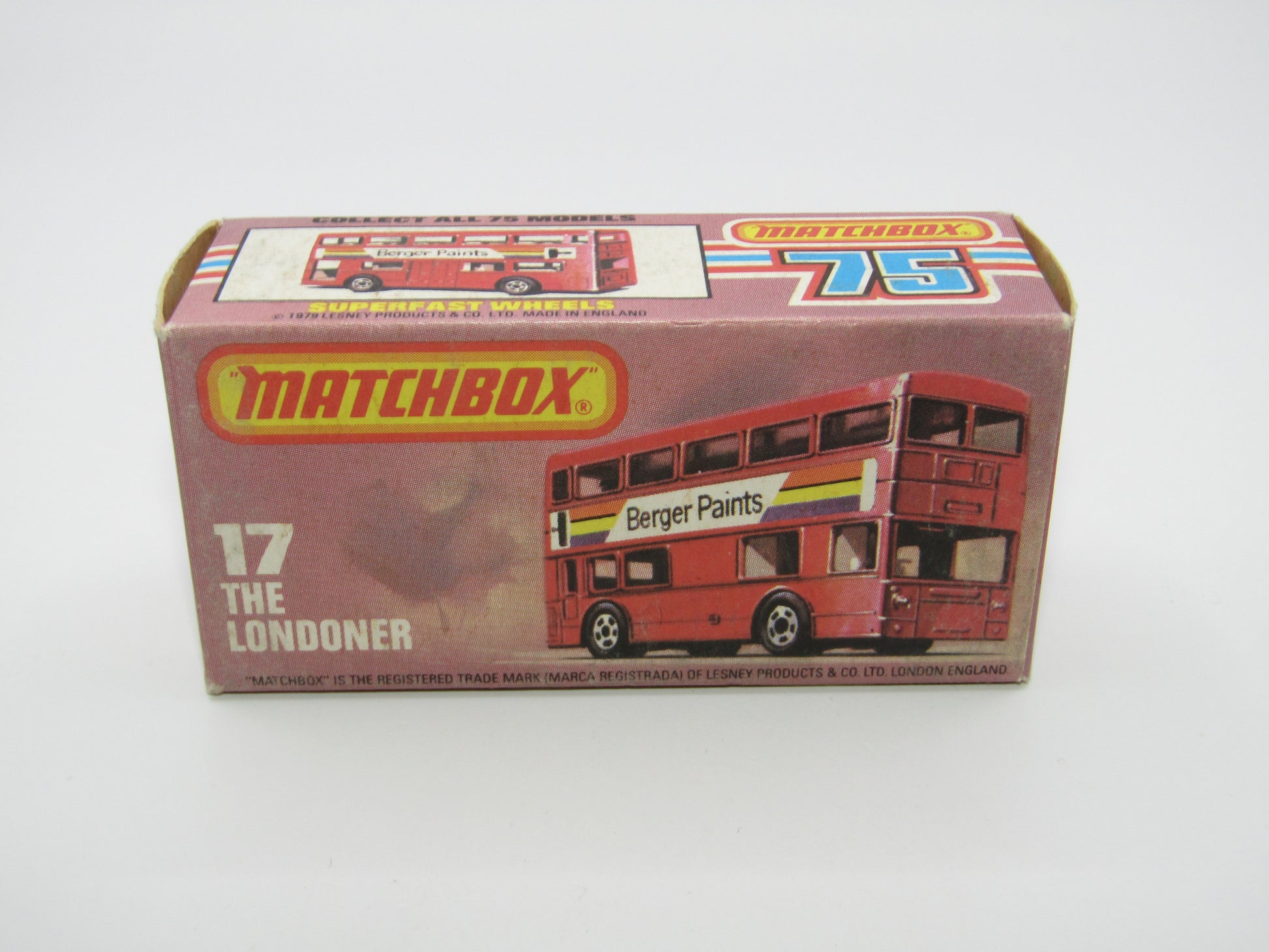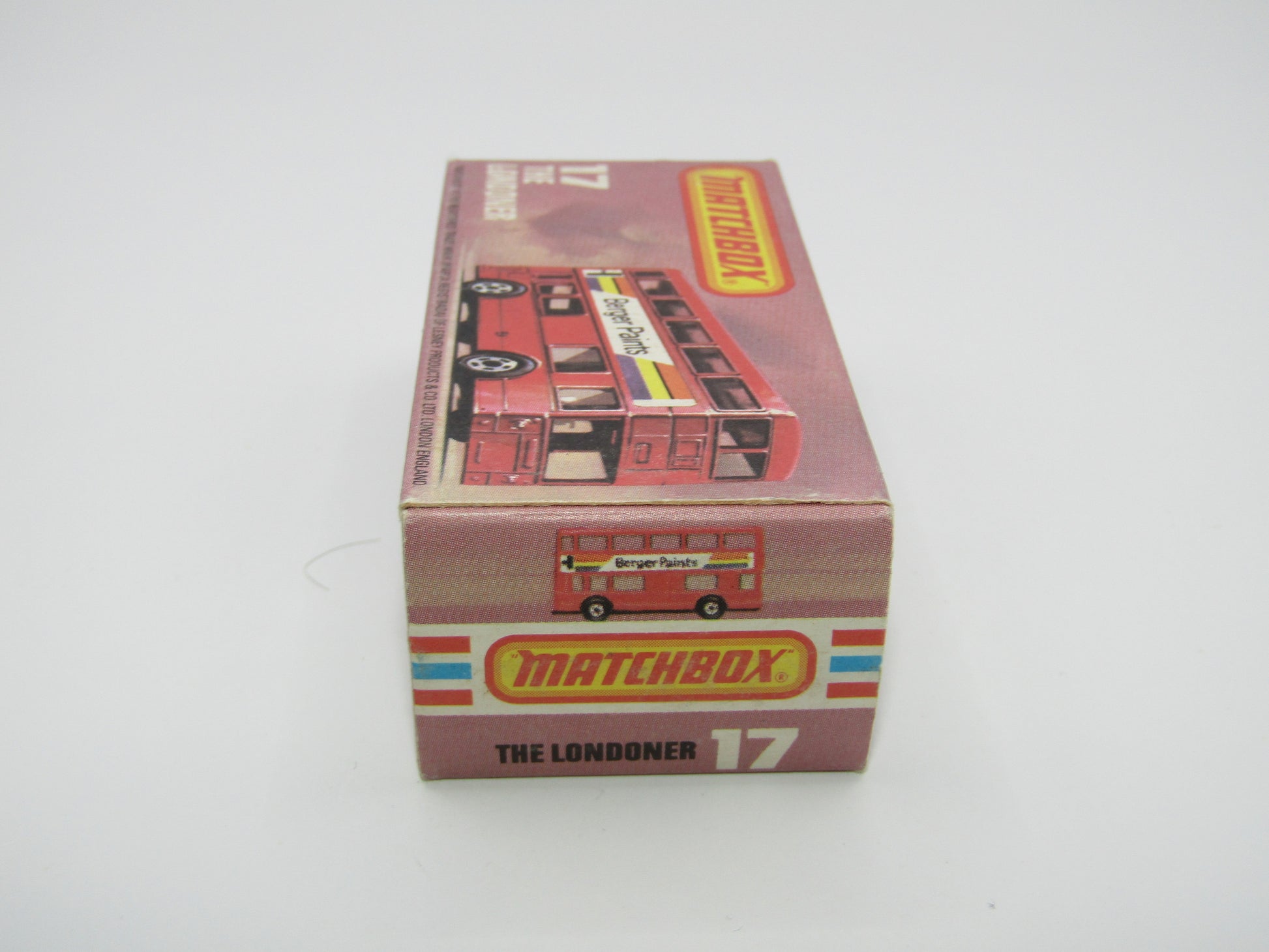 Matchbox Superfast No 17B The Londoner, EDUSCHO KAFFEE, 5 Spoke Wheels, Gloss Black Base