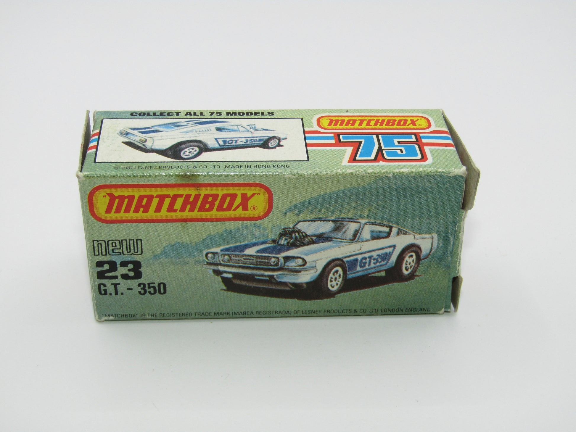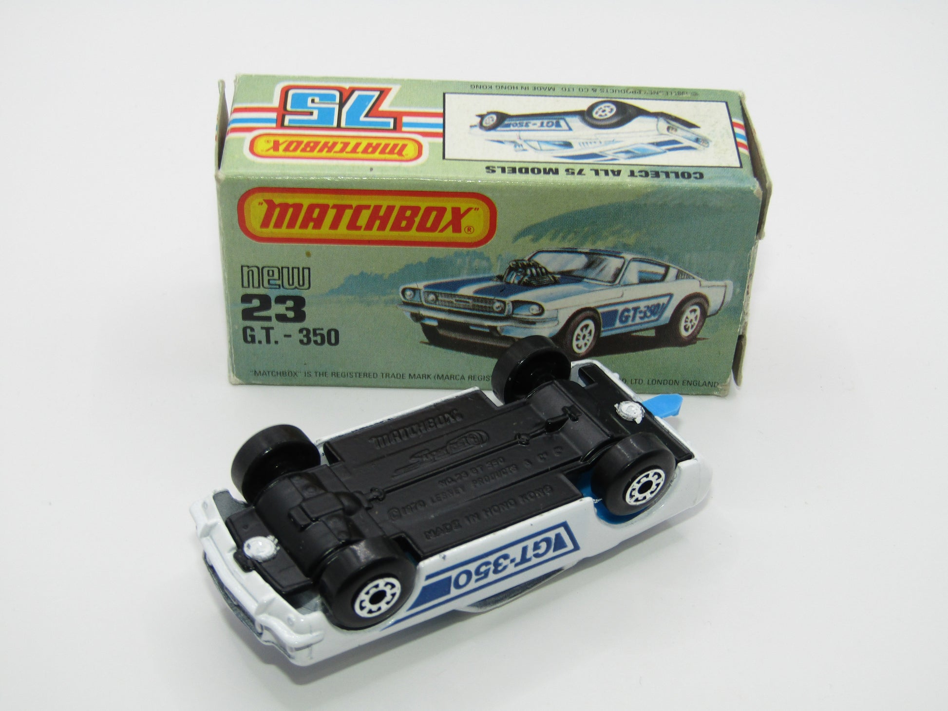 Matchbox Superfast No 23D Mustang GT 350, DARK Blue Tampo, 5 Arch Wheels , USA Picture Box