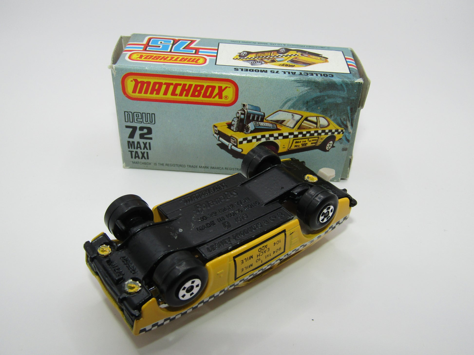 Matchbox Superfast No 72D Maxi Taxi REVERSED TAMPO 5 Spoke Wheels USA Picture Box