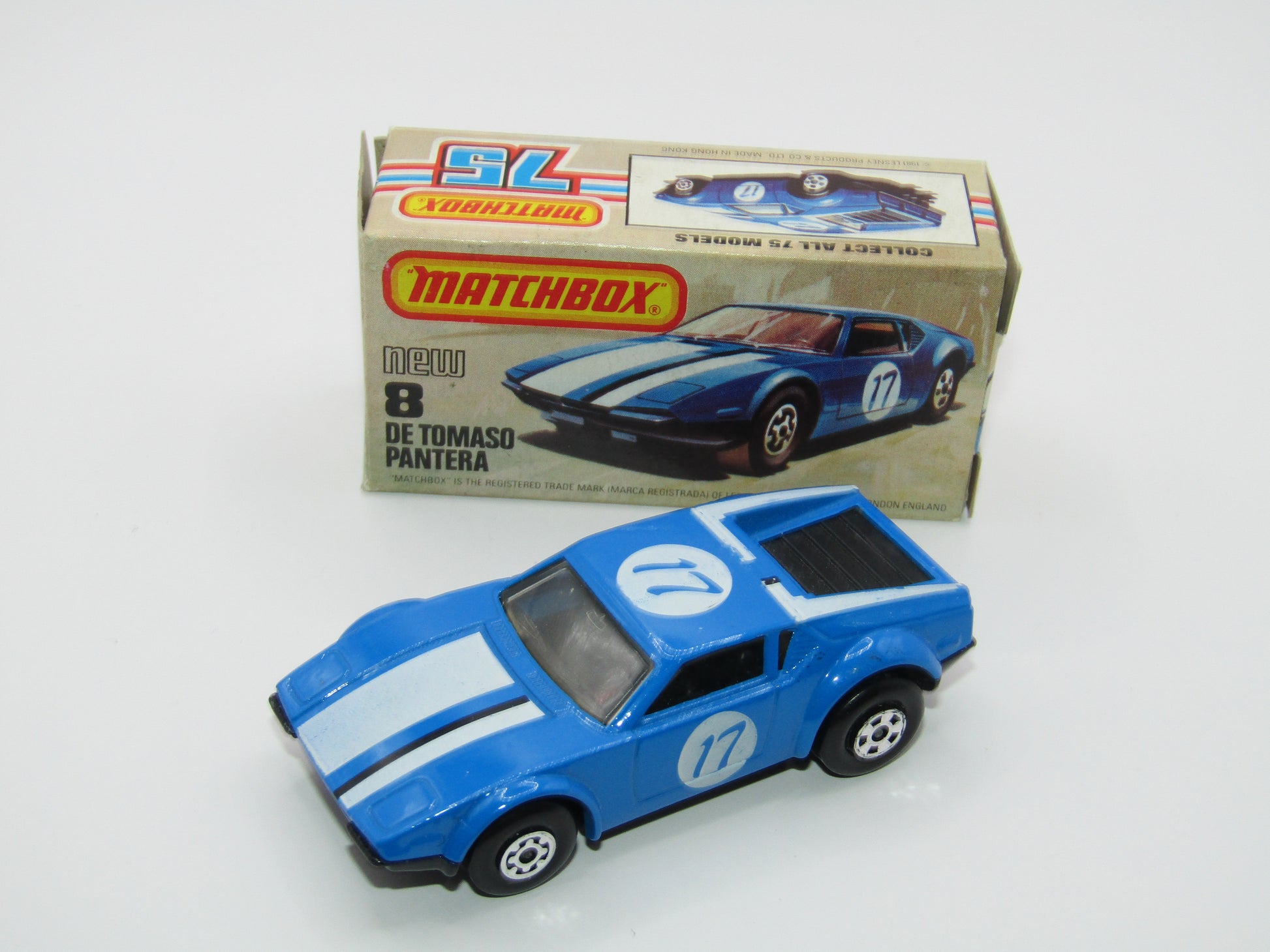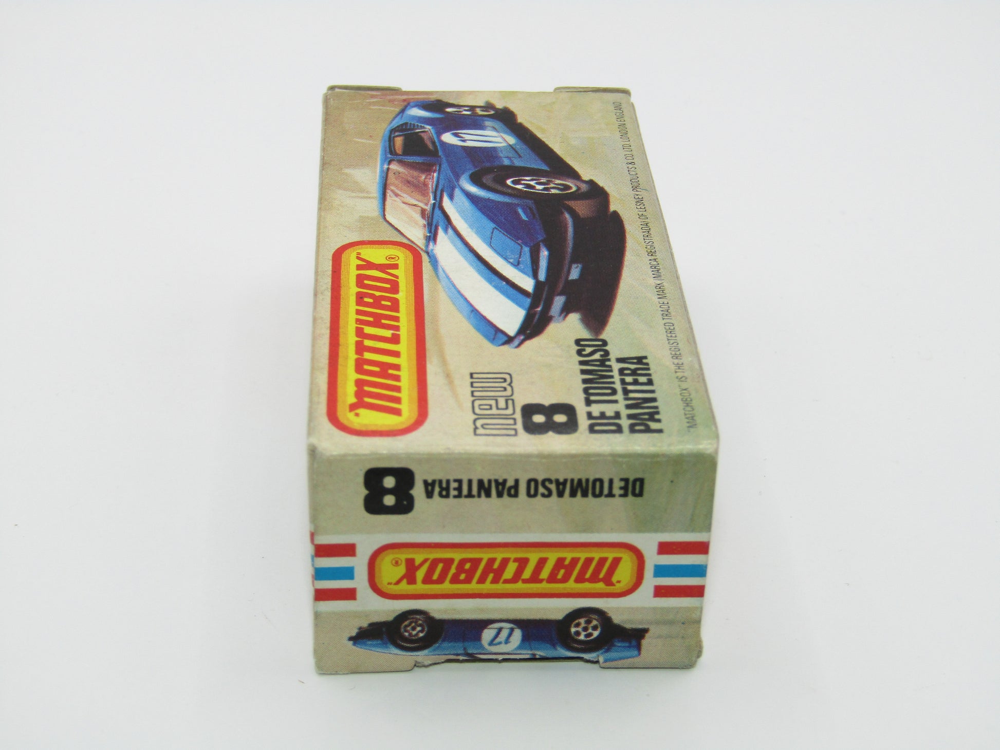 Matchbox Superfast No 8D De Tomaso Pantera, GLOSS BLACK BASE, USA Picture Box